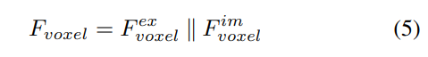 与从LSS生成的点相比,体素查询在3D空间中均匀分布,并且它们是从所有训练样本的统计特性中学习的,这与LSS中使用的深度先验信息无关。因此,和相互补充,将它们连接起来作为视图变换模块的输出特征: