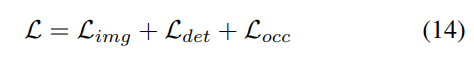 渐进式loss weight调整策略。在实践中,发现直接结合上述损失往往会导致训练过程失败,网络无法收敛。在训练的早期阶段,体素特征Fvoxel是随机分布的,并且占用头和检测头中的监督比收敛中的其他损失贡献更小。同时,检测任务中的分类损失Lcls等损失项目非常大,并且在训练过程中占主导地位,使得模型难以优化。为了克服这一问题,提出了渐进式损失权重调整策略来动态调整损失权重。具体而言,将控制参数δ添加到非图像级损失(即占用损失和检测损失)中,以调整不同训练周期中的损失权重。控制权重δ在开始时被设置为较小的值Vmin,并在N个训练时期中逐渐增加到Vmax: