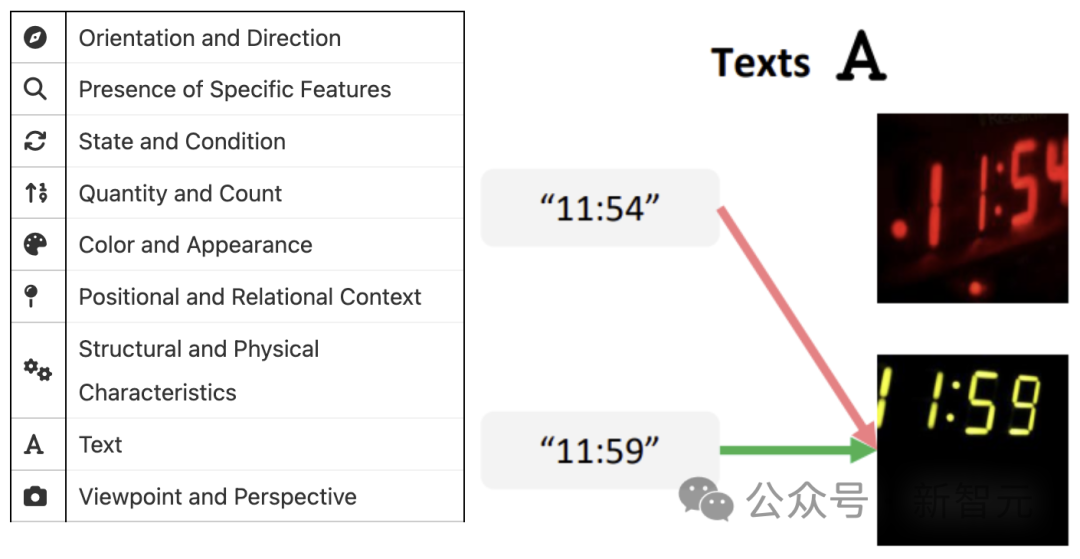 研究人员将MMVP基准测试中的问题子集提炼成更简单的语言描述,并将它们分类为视觉模式。为了保持每个视觉模式的问题数量平衡,他们会根据需要添加一些问题,以确保每个视觉模式由15个文本-图像对表示。