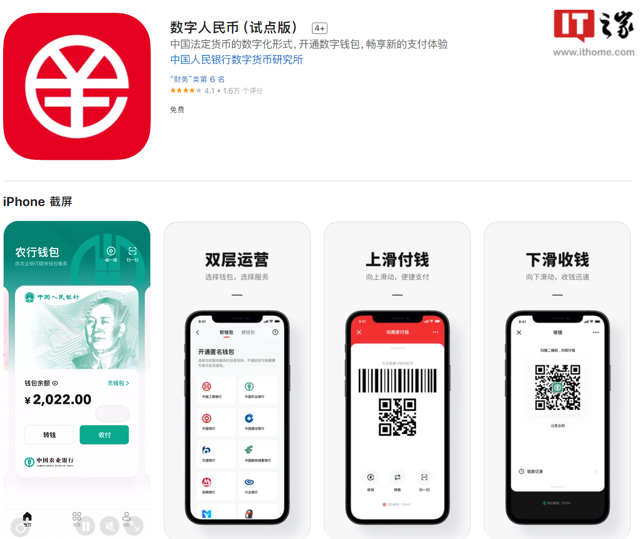 数字人民币(试点版)App 是中国法定数字货币 —— 数字人民币面向个人用户开展试点的官方服务平台,提供数字人民币个人钱包的开通与管理、数字人民币的兑换与流通服务。数字人民币在试点地区和试点场景开展研发试点,试点客户可注册数字人民币 App。由中国人民银行数字货币研究所打造,这是中国法定货币的数字化形式,开通数字钱包,畅享新的支付体验。