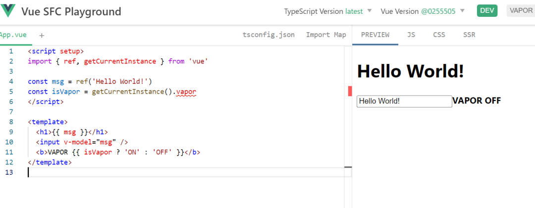 由于 Vue Vapor 现阶段是实验阶段,还不太好在项目中去使用,但是官方提供了一个在线的演练网站,可以在上面去体验
