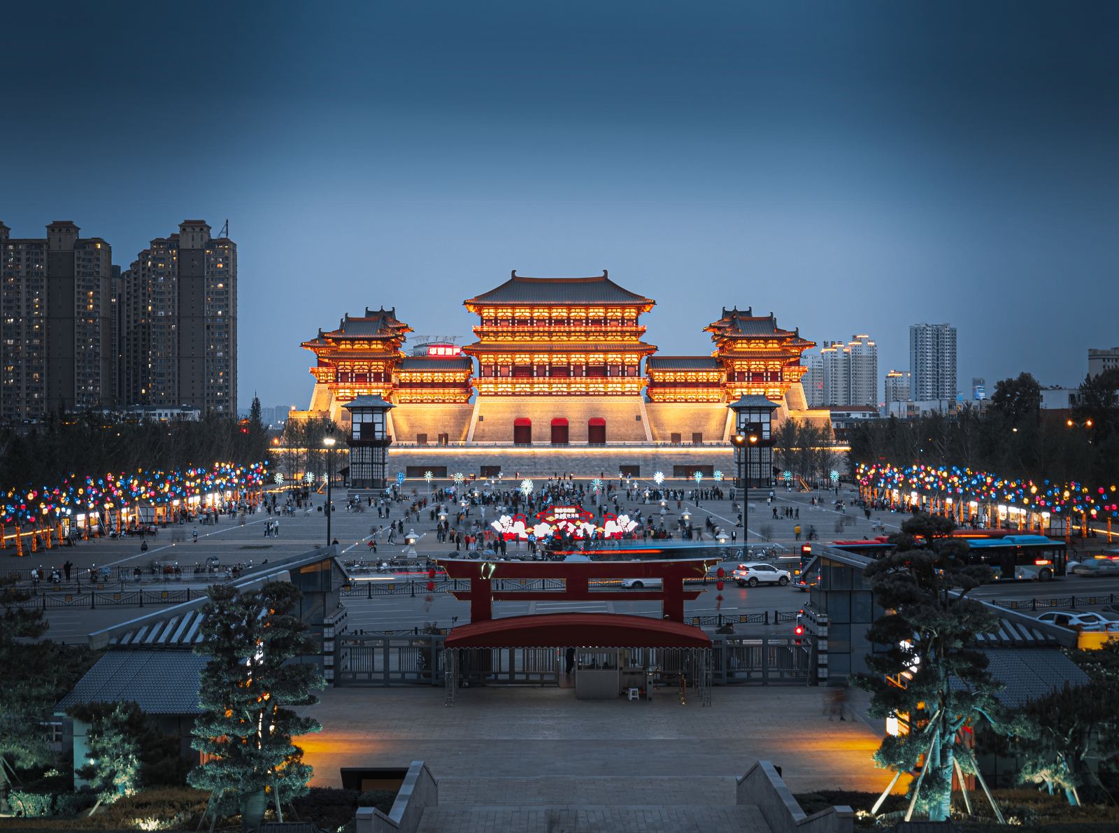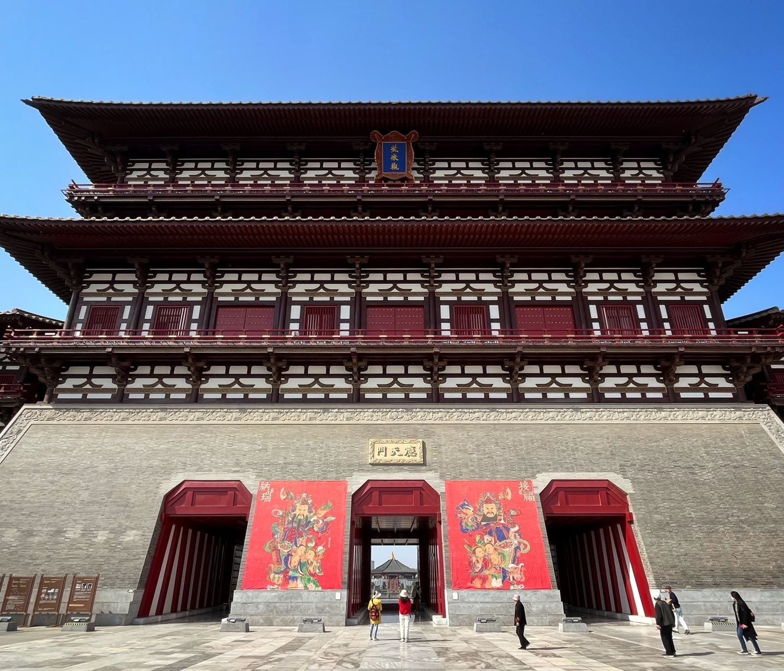 应天门是隋唐洛阳城宫城的正南门,始建于隋大业元年,也就是公元605年,先后历经隋、唐、五代、北宋四个时期,在南宋建炎二年1128年,被金兵烧毁,沿用523年之久。应天门是当时举办重大国事庆典与外交活动的重要场所,若元正、冬至、陈乐、宴会、赦宥罪、除旧布新,当万国朝贡使者、四夷宾客等重要庆典,皇帝均登临听政,功能类似现在的北京午门。这座城门既见证了隋炀帝杨广入主东都、唐高宗诏释百济扶余王、女皇登基称帝、唐玄宗接见日本第八次遣唐使的王朝盛世 。每逢上元节,应天门广场也会举办盛大的百戏表演,隆重的时候,演出的队伍会从这里一直绵延到4公里外的郭城的正南门。应天门在不同时期名称也有所不同:隋代初建,根据《论语》“惟天为大,惟尧则之”,取“以天为则”之意,故称“则天门”;唐神龙元年705唐中宗李显执政时期,避武后尊号“则天大圣皇帝”,改称应天门。唐玄宗开元年间,此楼改称为五凤楼,五凤楼一直沿用至五代、北宋时期;北宋末年,金兵入侵中原,洛阳成为战场,遭到严重破坏,金兵一把火烧毁了这座繁华了530多年的隋唐洛阳城,应天门渐渐淡出人们的视野。应天门规模宏伟,气势浩大,是中国传统礼仪中能展示身份和地位的建筑之一。《元·河南志》记载:宫城正门曰则天门,门有两重观,上曰紫微观,左右连阙,阙高120尺。按照唐代一尺29.4厘米来计算,折合今天的36米左右,这座恢弘的城楼差不多有今天的十二三层楼高。唐代诗人白居易曾在应天门上向南眺望,并作诗云:“龙门翠黛眉相对,伊水黄金线一条”。在应天门上就可以看到15公里外的龙门伊阙,显示出应天门的雄伟壮阔。
