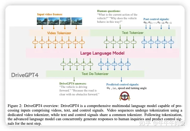 这篇文章来自于Wayve, 论文中引入了一种独特的物体级多模态LLM架构,将向量化数字模态与预训练的LLM相结合,以提高在驾驶情景中的上下文理解能力。除此之外论文还提供了一个包含来自1万个驾驶情景的160,000个问答对的新数据集,与由RL代理程序收集的高质量控制命令和由教师LLM(GPT-3.5)生成的问答对相配对。