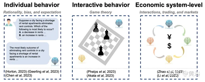 值得一提的是,与人类一样,由于知识和计算能力的限制,智体无法做出完全理性的选择[185]。相反,可以根据不完美的信息做出次优但可接受的决策。这种能力对于在经济市场[13]和管理组织[162]中实现类人模拟尤为关键。例如,在模拟消费者行为、市场交易和商业决策时考虑智体的有限理性,可以更准确地反映真实的经济活动。此外,在模拟组织内的决策、团队合作和领导力时,有限理性有助于揭示真实工作环境中的行为动态。