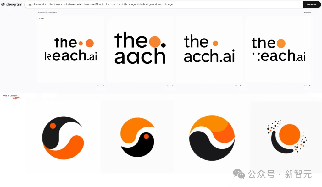 作者又测了测需要带有文字的logo生成,虽然Ideogram的logo似乎也不能拿来就用,但是它至少符合要求,有明显的文字效果,而Midjourney似乎就完全没有体现出文字内容。